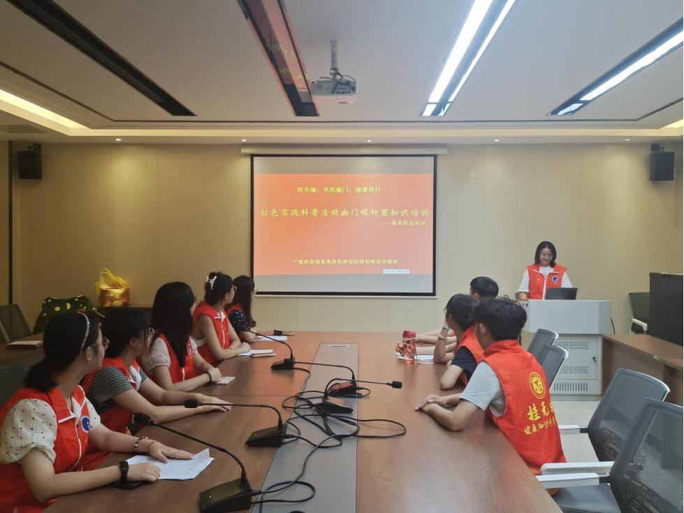幽门螺杆菌感染是一种常见的慢性细菌感染,它的感染群体存在地域差异,在发展中国家更为普遍,我国感染幽门螺杆菌比例占总人口的41.5~72.3%。为提高大众健康素养和防范幽门螺杆菌感染的意识,2024年7月16日至19日,广西病原微生物耐药防控科技创新合作基地的“桂无幽”公益科普团队,在黄衍强老师的指导下,开展为期四天的公益科普活动。