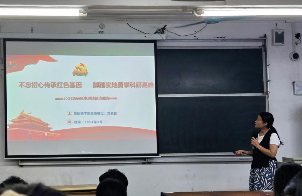 必威西汉姆联官网党委书记宾晓芸以“不忘初心传承红色基因 脚踏实地勇攀科研高峰”为主题,从马克思主义创始人的“初心”、中国共产党人的“初心”、右医人的“初心”三方面展开讲解,为研究生新生开展理想信念教育,教育引导同学们志存高远,培养创新精神,脚踏实地攀登,守护好祖国南大门,为祖国的医药卫生事业做贡献。