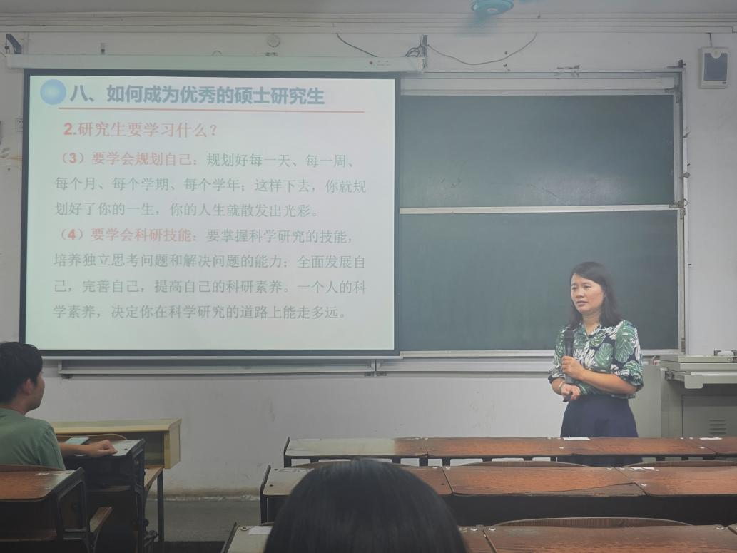 为提升学生心理健康素养,陈莎老师向大家讲解了研究生在人际、学习、环境等方面的适应需求,引导新生提升对未来学习生活的信心,明确学习目标和规划。