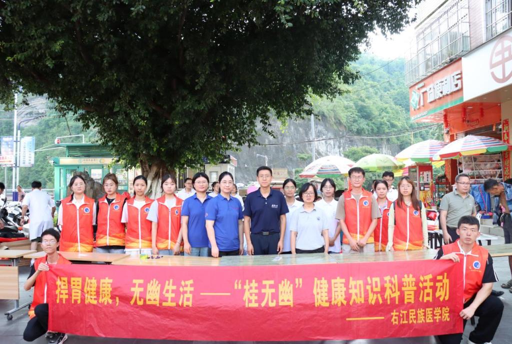 7月12日下午,右江民族医学院“桂无幽”科普团队联合武汉大学中南医院专家、右江民族医学院附属医院专家及百色市西林县人民医院专家,在西林县民族文化广场共同开展了健康科普和专家义诊活动。本次活动通过义诊、发放宣传单、涂鸦和拼图小游戏等多种形式,向广大群众科普幽门螺杆菌的防治知识。