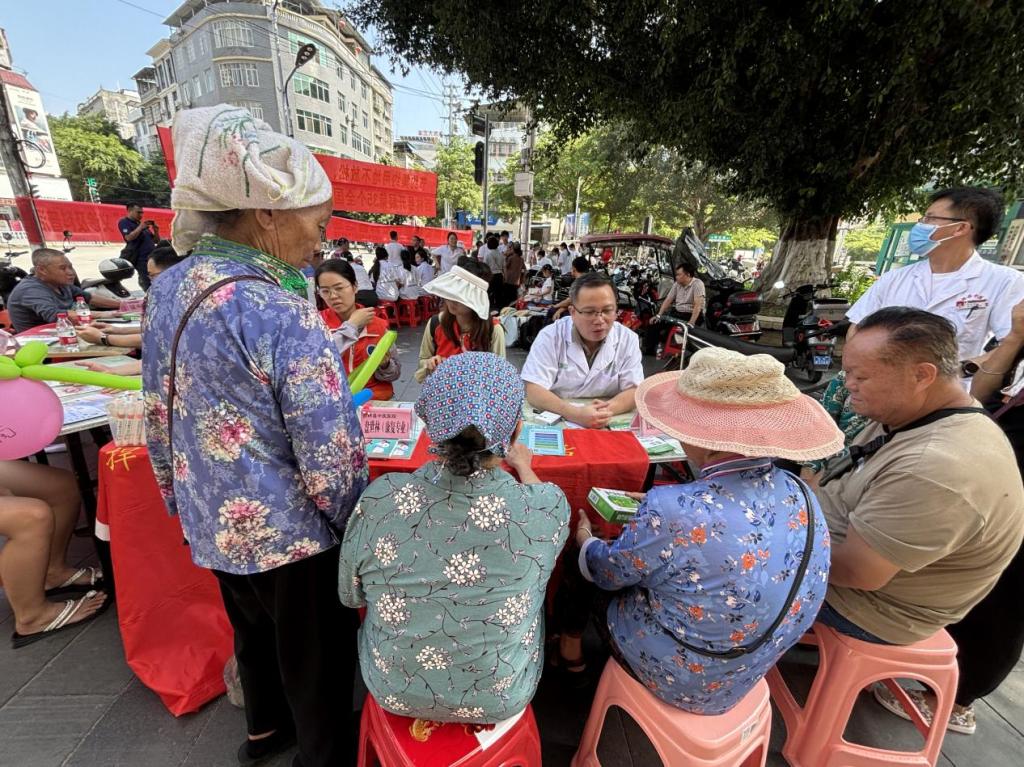 活动现场,科普团队窦锡彬专家在原有义诊与科普互动的基础上,融入了民族医疗技术,吸引了众多前来问诊群众,现场络绎不绝。