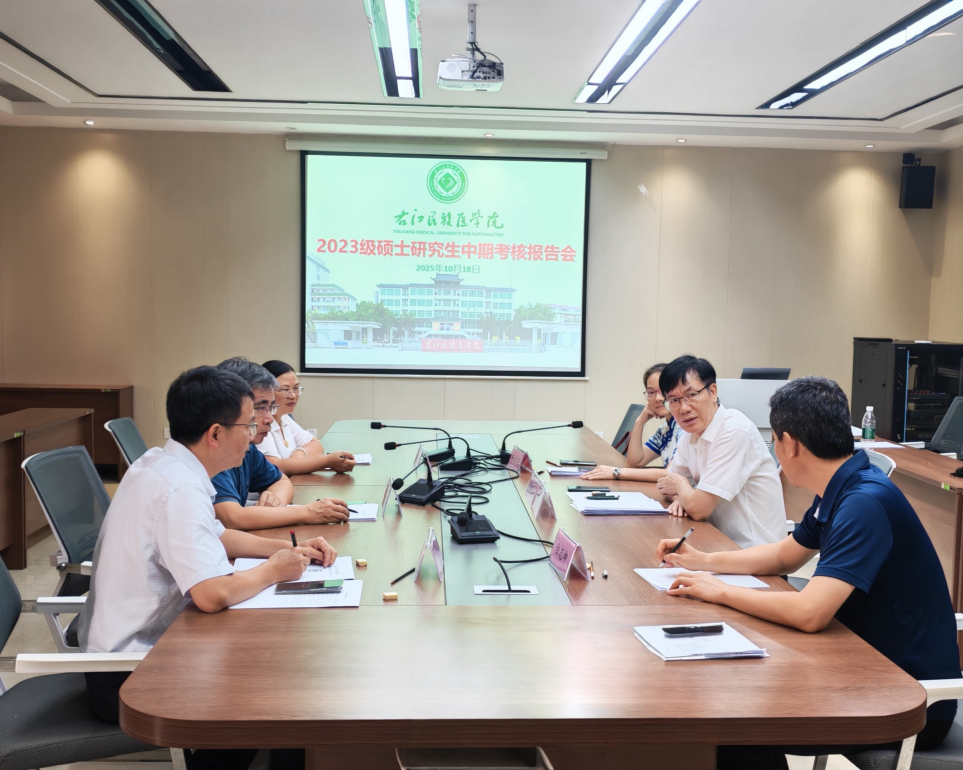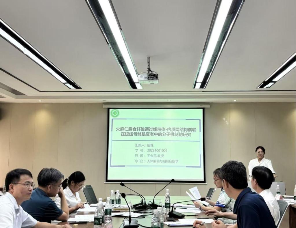 为进一步提升研究生培养水平,检验研究生阶段性学习成果,2025年10月18日上午,人体解剖与组织胚胎学课题组在西区8栋421会议室举行2023级研究生中期考核报告会。学校党委常委、副校长解继胜担任考核组组长,学科导师王金花教授、陈秉朴教授、杨彩艳教授、钟斌教授、白志坤教授担任考核组成员。课题组全体硕士研究生现场观摩学习。