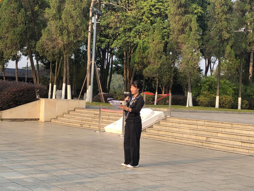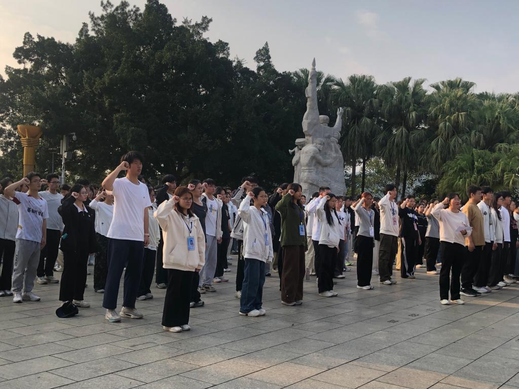 历经三个多小时的徒步跋涉,两支队伍顺利会师于百色起义纪念碑前。在庄严肃穆的氛围中,师生代表怀着无比崇敬的心情,向革命烈士敬献花圈。全体师生肃立默哀,深切缅怀革命先烈,随后依次走向纪念碑,郑重献上手中的小白花,表达对先烈的追思与敬仰。此外,现场还开展了新党员入党宣誓,老党员重温入党誓词,团员重温入团誓词、微党课、诗朗诵等活动。