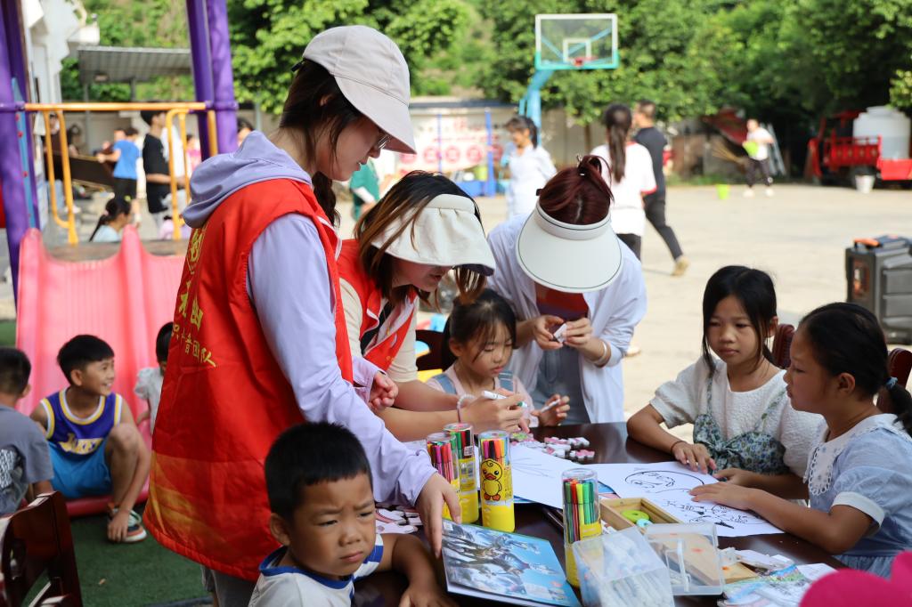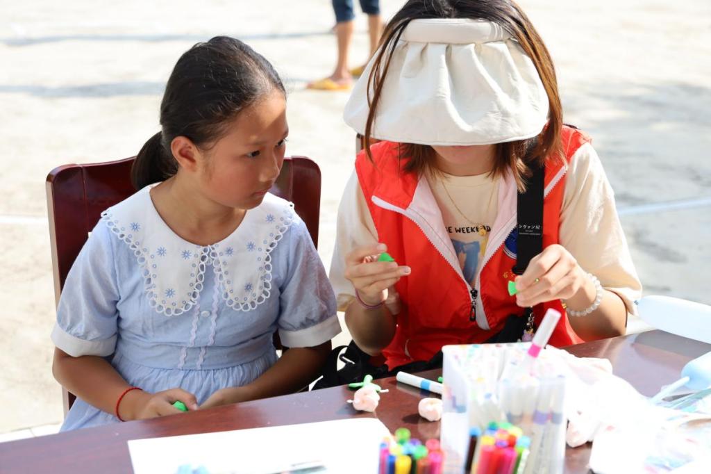 7月25日上午,科普队员进行了科普相关的趣味互动活动,如图片填色、拼图、DIY粘土等,带动小朋友完成手工的同时帮助她们了解了幽门螺杆菌,用形象、通俗、有趣的方式把幽门螺杆菌的危害、传播途径及防治方法等知识展现给村民们。