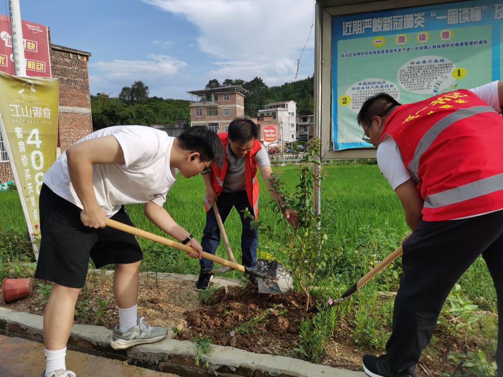 “倡导文明新风,共建美好家园”的主题活动:实践团成员积极参与清除杂草、翻新土地和疏通水道等项目,助力村庄环境的改善和美化工作。