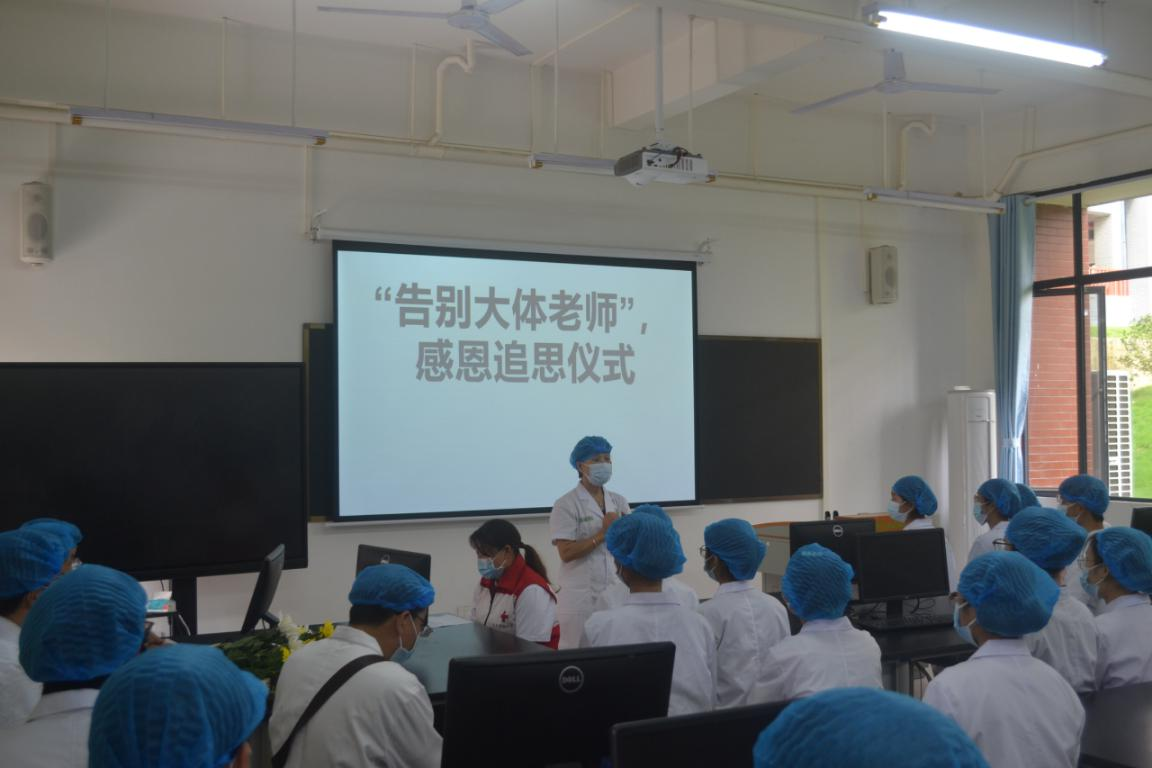 10月12日上午10时许,必威西汉姆联官网在百东校区立德楼的人体解剖实验室(三)举行了庄重的告别“大体老师”感恩追思仪式,参加感恩追思仪式的有必威西汉姆联官网党委书记宾晓芸教授,人体解剖实验教学中心主任黄秀峰教授,百色市红十字会的工作人员,人体解剖实验教学中心和人体解剖学教研室的老师,以及我校2022级临床医学专业的三十多名学生。
