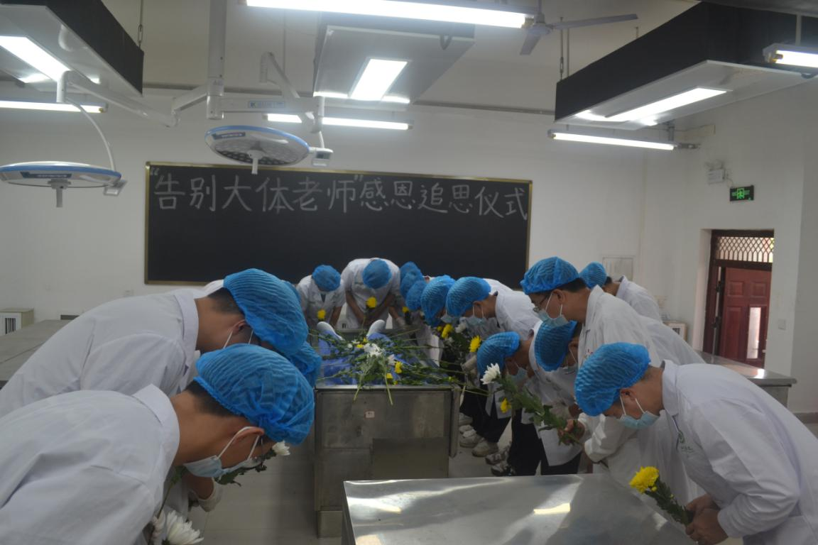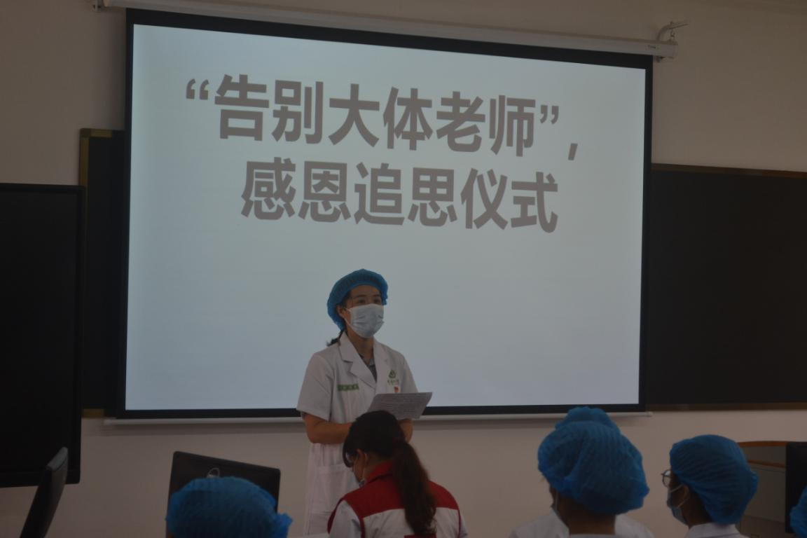 感恩追思仪式由黄秀峰教授主持,百色市红十字会的黄伟勤同志介绍了“大体老师”那苏同志的简要生平,分享了那老师自愿捐献器官、捐献遗体的故事和他感人肺腑的临终遗言。遗言中提到:“我志愿将自己的遗体和眼角膜无条件的奉献给医学科学事业,为祖国医学教育事业和提高疾病防治水平,让在黑暗中行走的眼疾患者重见光明,用平凡生命最后的闪光把人间照亮。” 这份无私的奉献精神深深触动了在场的每位参与者。宾晓芸教授对大体老师的离世表示沉痛的悼念,对大体老师无私奉献、为医疗事业毅然捐献遗体的壮举表示崇高的敬意,她鼓励同学们要继承“大体老师”的遗志,秉承学校的“大医精诚”校训,珍惜难得的学习机会和宝贵时光,并希望同学们认真努力学习解剖学知识,为今后成为一名医德高尚,技术精湛,“下得去、用得上、留得住”的人间大医打好坚实的医学基础,为祖国医学事业发展作出更大的贡献。