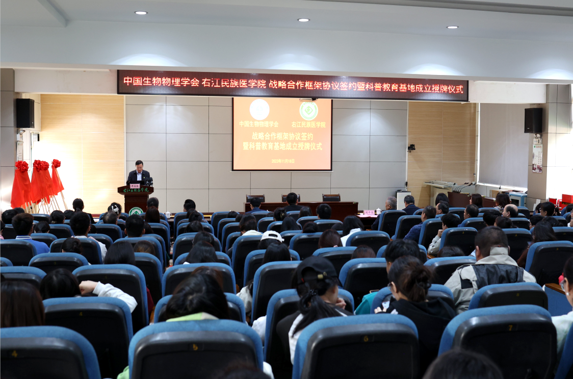 11月18日上午,中国生物物理学会、右江民族医学院、百色市科学技术协会战略合作框架协议签约暨科普教育基地成立授牌仪式在我校顺利举行。