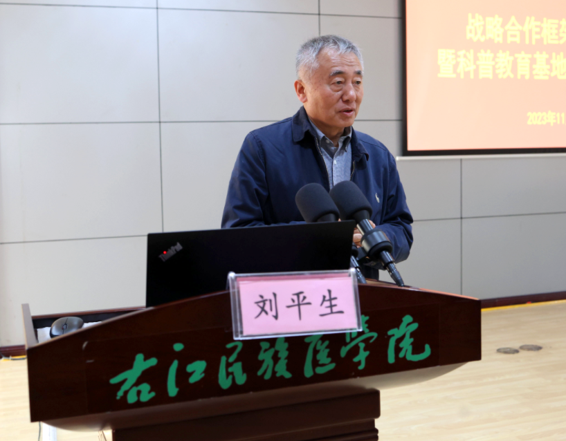 刘平生总干事长在致辞时指出,中国生物物理学会将充分发挥人才资源优势和桥梁纽带作用,以“中国生物物理学会百色科创中心”、“中国生物物理学会右江民族医学院科普教育基地”、“中国生物物理学会百色市科技馆科普教育基地”、“中国生物物理学会广西病原微生物耐药防控科技创新合作基地”为阵地,以推动地方科技创新,加强科学普及,提高全民素质为目标,联系服务广大科技工作者和科普爱好者,培养科技科普人才,不断提升百色老区和右江民族医学院师生的科学素质,助力地方经济社会高质量发展,为新时代全面深入实施创新驱动发展战略、加快建设世界科技强国营造良好的科技创新文化氛围,为科技兴国战略的实施作出努力和贡献。