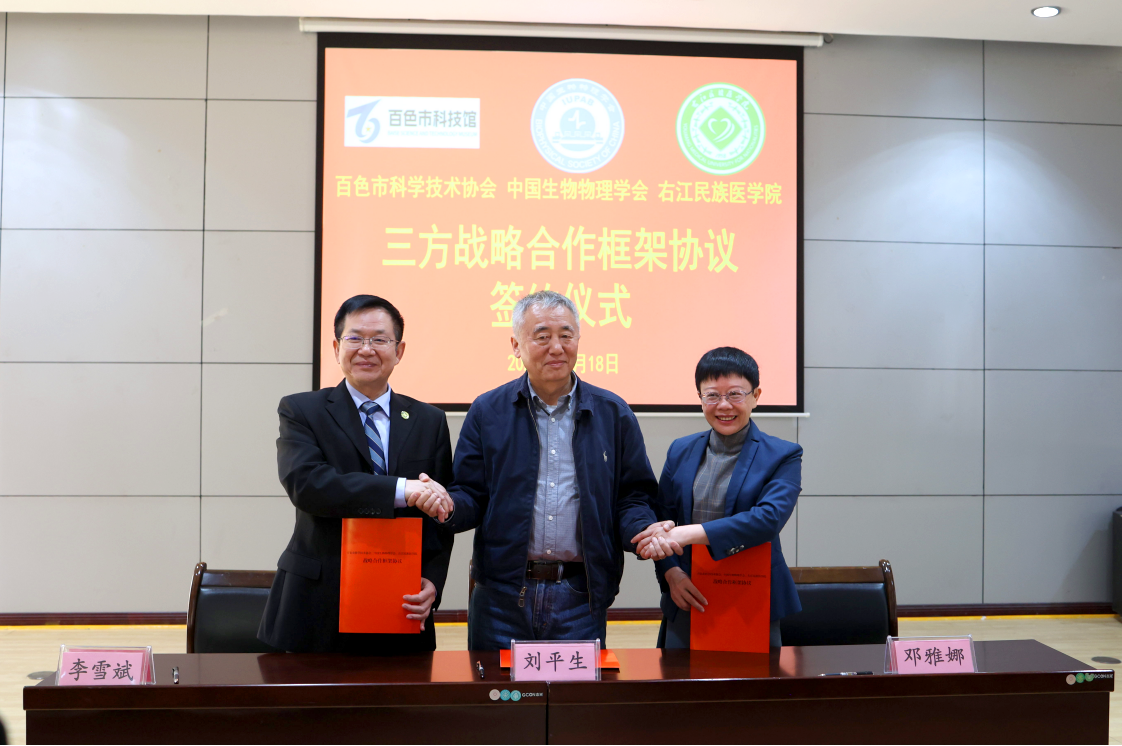 据悉,中国生物物理学会、右江民族医学院、百色市科学技术协会三方将依托协议,紧密建立相互促进、持续发展的战略合作关系,建立“会地合作、会校合作”的科创科普协同机制,积极发挥自身优势,整合集聚资源,推进科创科普深度融合,为服务地方科技创新、科学普及协同发展和全民科学素质提高贡献力量。