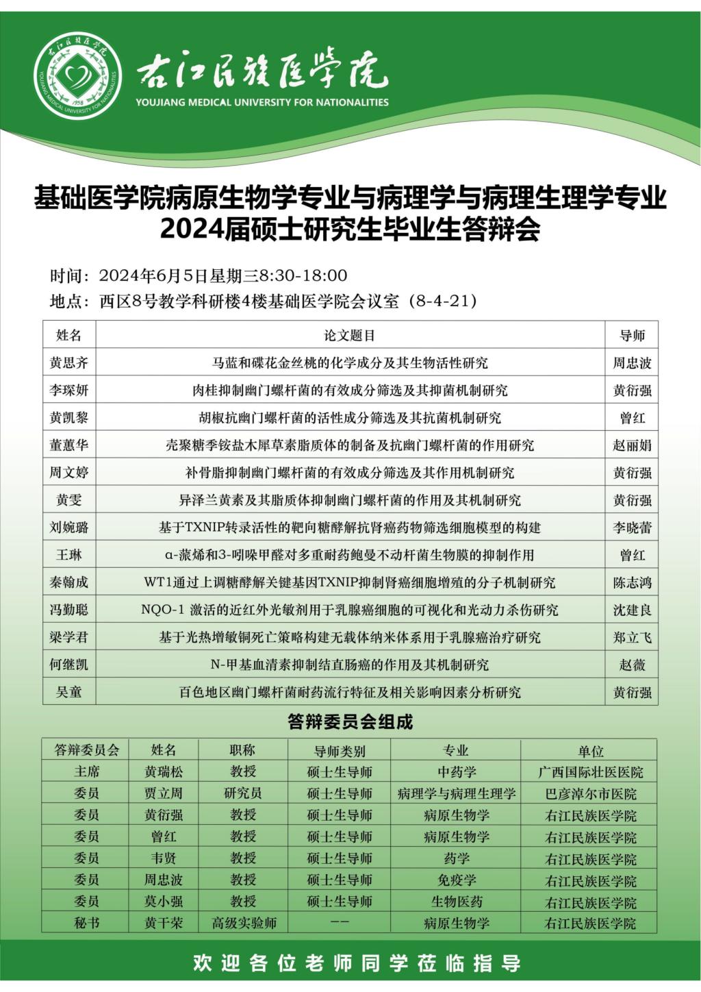 必威西汉姆联官网病原生物学专业与病理学与病理生理学专业2024届硕士研究生毕业生答辩会