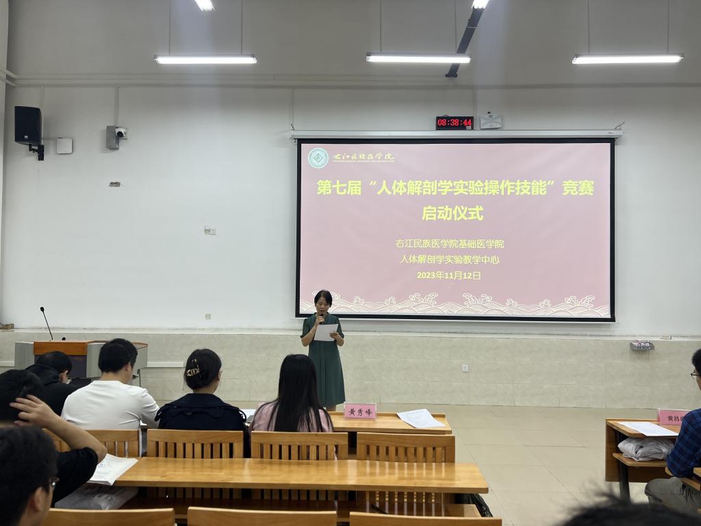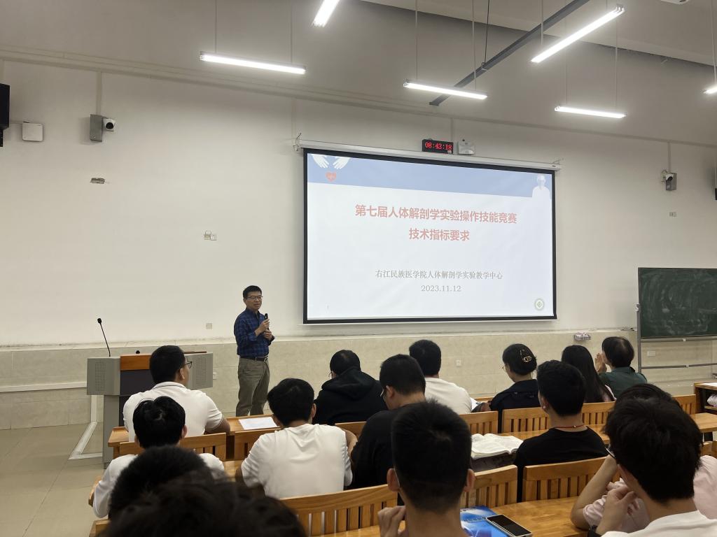 为进一步提升学生解剖操作技能水平,11月12日上午,必威西汉姆联官网主办、人体解剖学实验教学中心承办的第七届“人体解剖学实验操作技能”竞赛启动仪式在百东校区守正楼C107教室举行,人体解剖学实验教学中心黄秀峰主任、黄昌盛副主任,人体解剖学实验教学中心全体教师以及各竞赛小组的指导教师和196名参赛学生参加启动仪式。
